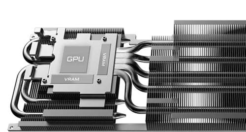WINDFORCE soğutma sistemi, en son teknolojilerin birleşimiyle olağanüstü termal performans sunar. Sunucu sınıfı termal iletken jel, alternatif dönüşlü yenilikçi Hawk fanlar, kompozit bakır ısı boruları, bakır plaka, 3D aktif fanlar ve ekran soğutması içerir.
