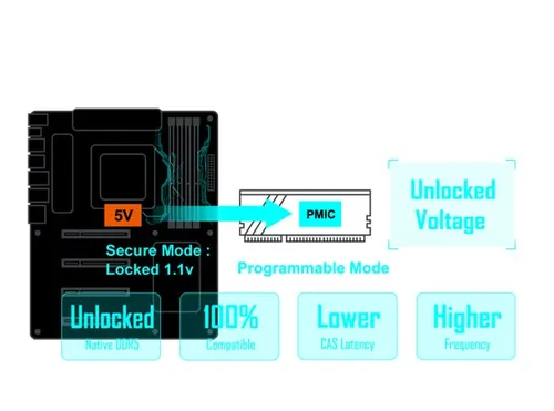 • Yerel DDR5 PMIC güvenli modunu programlanabilir moda açar ve yerel DDR5 voltajını geniş bir aralıkta kontrol eder.