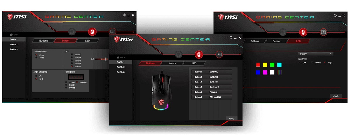 Işıklandırma kontrolü, düğme atamaları, DPI ayarları ve makro kaydetme gibi işlemlerin tümü MSI?ın Gaming Center veya Mystic Light yazılımları üzerinden gerçekleştirilebiliyor.