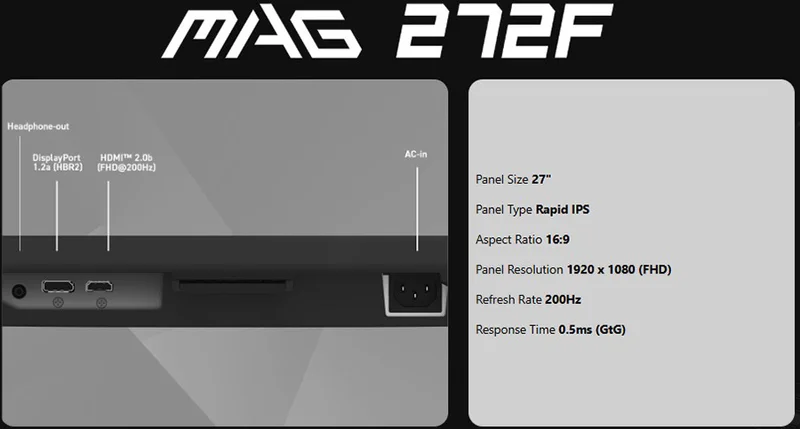 MAG 272F oyuncu monitörü ile sürükleyici bir oyun deneyimi yaşayın. 1920x1080 (FHD) panel, 200Hz tazeleme hızı, 0.5ms (GtG, Min) hızlı tepki süresi ile bu monitör kontrast ve gölge ayarları sayesinde göz alıcı detaylar sunan HDR Ready özelliğine sahiptir. Rekabetçi FPS oyunları, RPG/MMORPG ve savaş/yarış simülatörleri gibi oyun türlerinde MSI MAG 272F Gaming monitör oyun deneyiminizi yepyeni bir seviyeye taşıyarak oyunun ötesini görmenizi sağlar.
