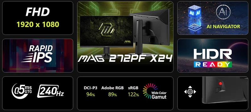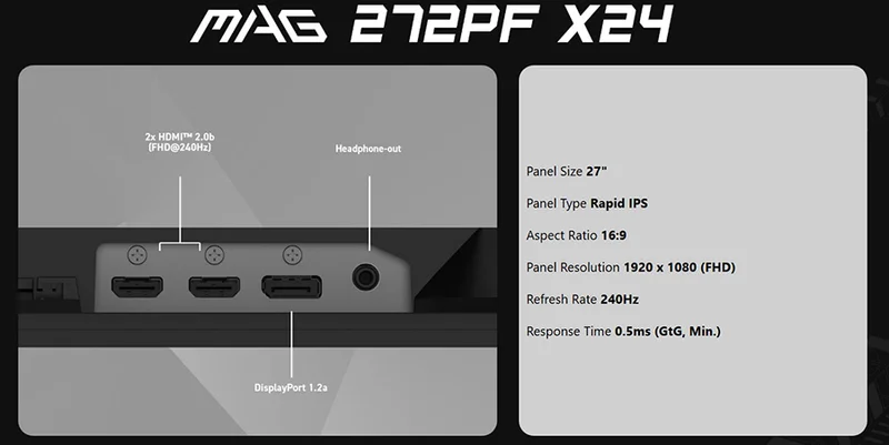 MAG 272PF X24 oyun monitörü ile sürükleyici oyun deneyimini yaşayın. 1920 x 1080 (FHD) panele, 240Hz yenileme hızına ve 0,5ms (GtG, Min) hızlı tepki süresi ve HDR Ready özelliğine sahip olup, kontrast ve gölgelerdeki ayarlamalarla göz alıcı ayrıntıları geliştirir. Rekabetçi FPS, birinci şahıs RPG/MMORPG ve uçuş/yarış simülatörü türleri için tasarlanan MSI MAG 272PF X24 oyun monitörü, oyuncuları oyunun ötesini görmeye zorlayarak, gündelik oyun deneyimini yeni bir seviyeye taşıyor.