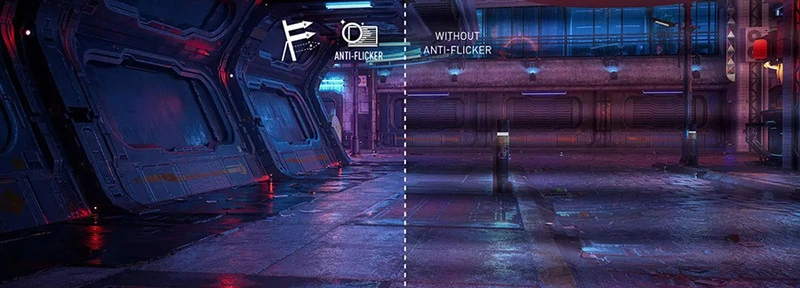 Anti-Flicker ve Less Blue Light teknolojileri ekrandaki kırpışmayı azaltarak ve mavi ışık yayılımını sınırlandırarak konforlu bir izleme deneyimi yaşatır. Böylece göz yorgunluğu yaşamadan saatlerce oynayabilirsiniz.