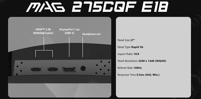 MAG 275CQF E18 oyun monitörüyle sürükleyici bir oyun deneyimi yaşayın. 2560 x 1440 (WQHD) panel, 180 Hz yenileme hızı ve 0,5 ms (GtG, Min.) hızlı tepki süresi sunan HDR destekli monitör, kontrast ve gölgelerdeki ayarlamalarla göz alıcı ayrıntıları vurgular. Rekabetçi FPS, birinci şahıs RPG/MMORPG ve uçuş/yarış simülatörü türleri için tasarlanan MSI MAG 275CQF E18 Kavisli Oyun Monitörü, sıradan oyun deneyimini yeni bir seviyeye taşıyarak oyuncuların oyunun ötesini görmelerini sağlar.