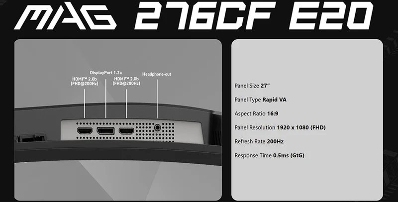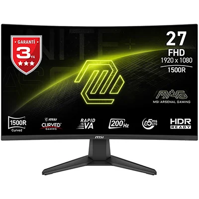 MAG 276CF E20 oyun monitörüyle sürükleyici bir oyun deneyimi yaşayın. 1920x1080 (FHD) panel, 200 Hz yenileme hızı ve 0,5 ms (GtG) hızlı tepki süresi sunar. HDR uyumlu monitör, kontrast ve gölgelerdeki ayarlamalarla göz alıcı ayrıntıları vurgular. Rekabetçi FPS, RPG/MMORPG ve uçuş/yarış simülatörü türleri için tasarlanan MSI MAG 276CF E20 Kavisli Oyun Monitörü, sıradan oyun deneyimini yeni bir seviyeye taşıyarak oyuncuların oyunun ötesini görmelerini sağlar.
