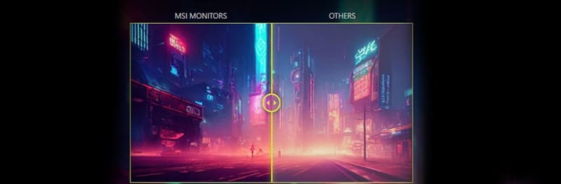 MSI monitör, görüntünün sarı tonlarına dönüşmesine izin vermeden donanımsal olarak HEV azaltma özelliği ile dnatılmıştır. Bu teknoloji panelinizde yerleşik bir katmanda bulunur; yani kullanıcı tarafından etkinleştirilmesine ya da kapatılmasına gerek yoktur.