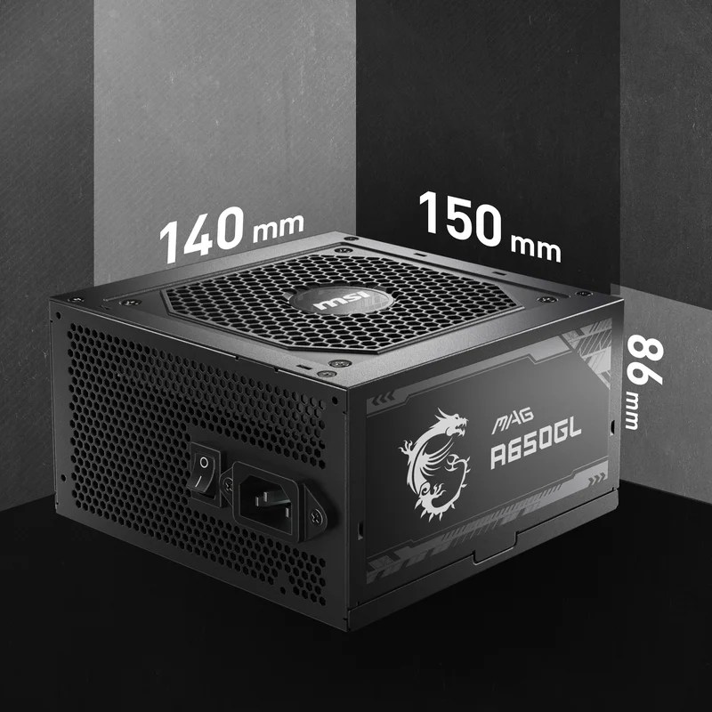 MAG A650GL güç kaynağı, 80 PLUS Gold sertifikası ile yüksek güç verimliliği sunar. Üstün performans için 120 mm FDB fan ile soğutulan bu PSU, Full-Bridge LLC DC-DC topolojisine ek olarak son derece kompakt ve tam modüler bir ATX tasarıma ve ciddi bir performansa sahip.