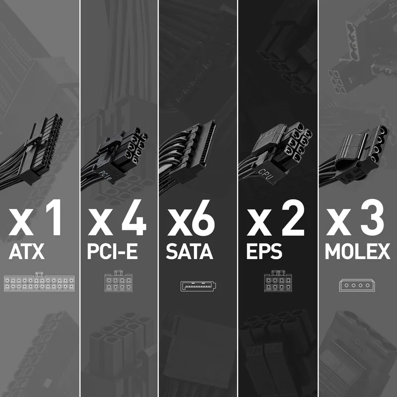 Çift GPU gücü (8-pin VGA konnektörleri) ile birçok NVIDIA ve AMD ekran kartlarını destekler.