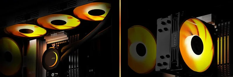 MPG Infinite Z3 ayrıca verimli bir hava soğutma sistemi opsiyonu da sunar. Performans ve fısıltı sessizliği arasında mükemmel bir denge sunan bu yapı sayesinde oyuna daha fazla odaklanabilirsiniz.